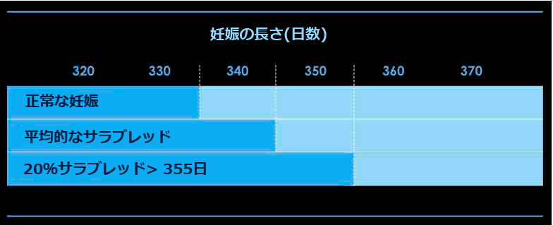 • 自然の繁殖期外で出産する牝馬(サラブレッド等)は、妊娠期間が長いのです。